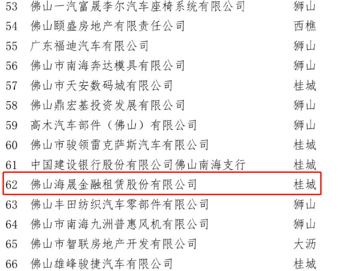 佛山市南海区2017年度纳税超3000万企业名单(部分)