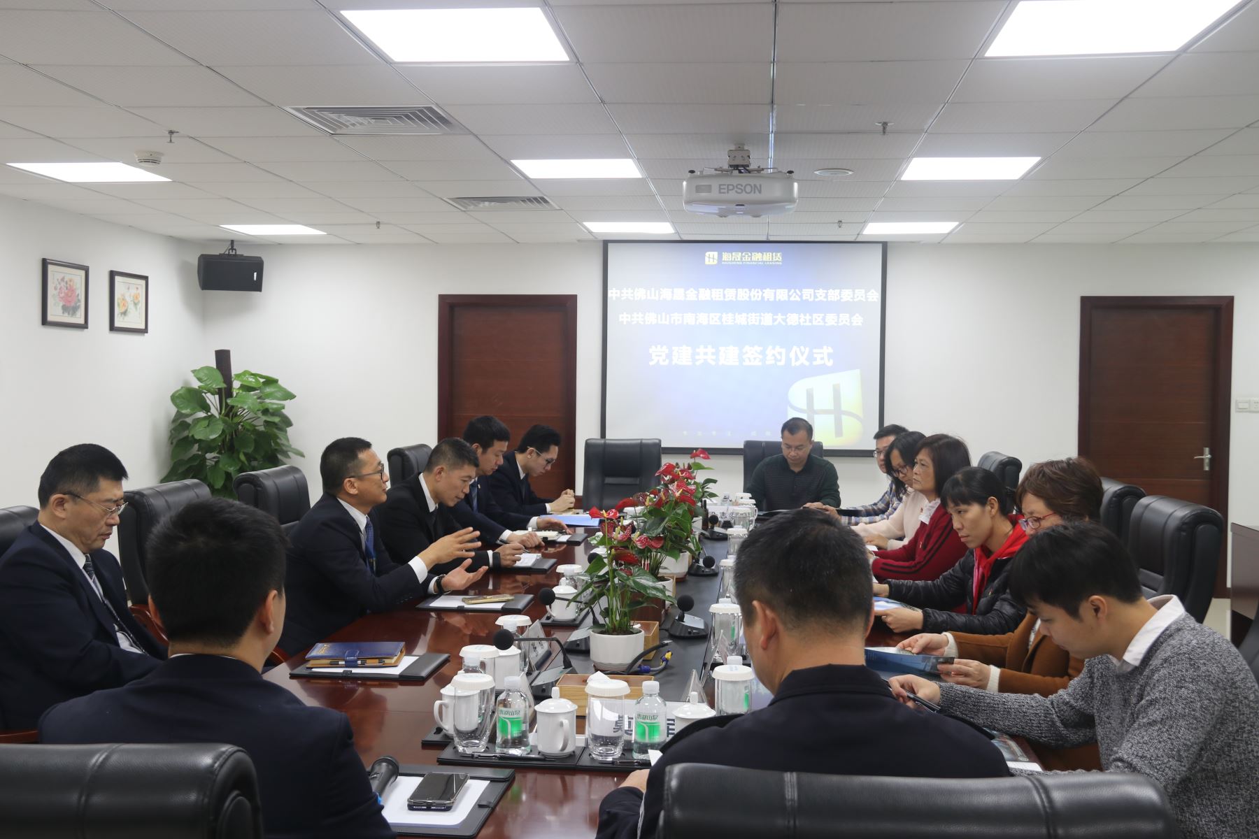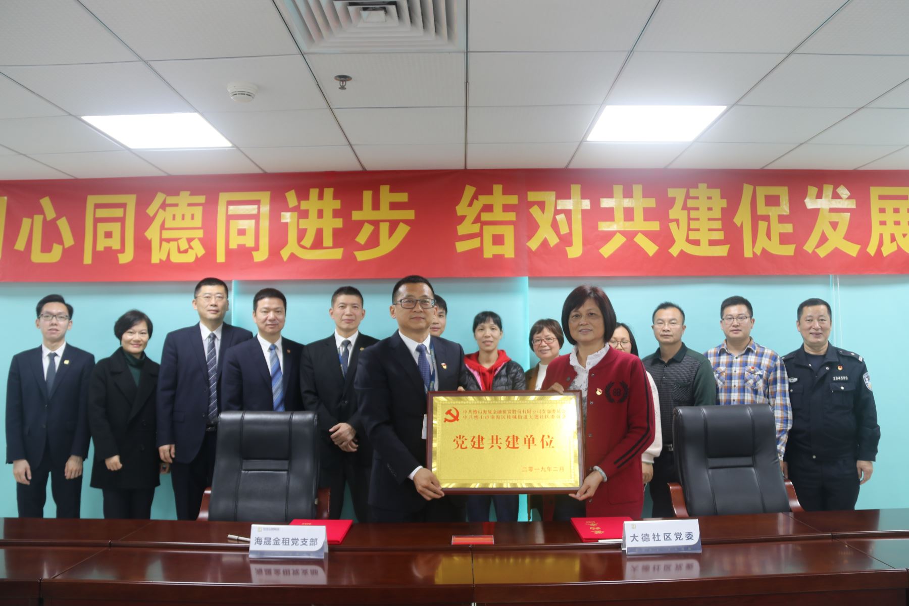 同心同德同进步,结对共建促发展。为深入学习贯彻落实党的十九大精神和习近平总书记重要讲话精神,弘扬“支部建在连上”的光荣传统,推动全面从严治党向基层延伸,3月5日,中共m88 app支部委员会(下称“海晟金租党支部”)与中共佛山市南海区桂城街道大德社区委员会(下称“大德社区党委”)举行“党建结对共建”签约仪式。