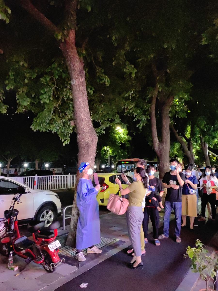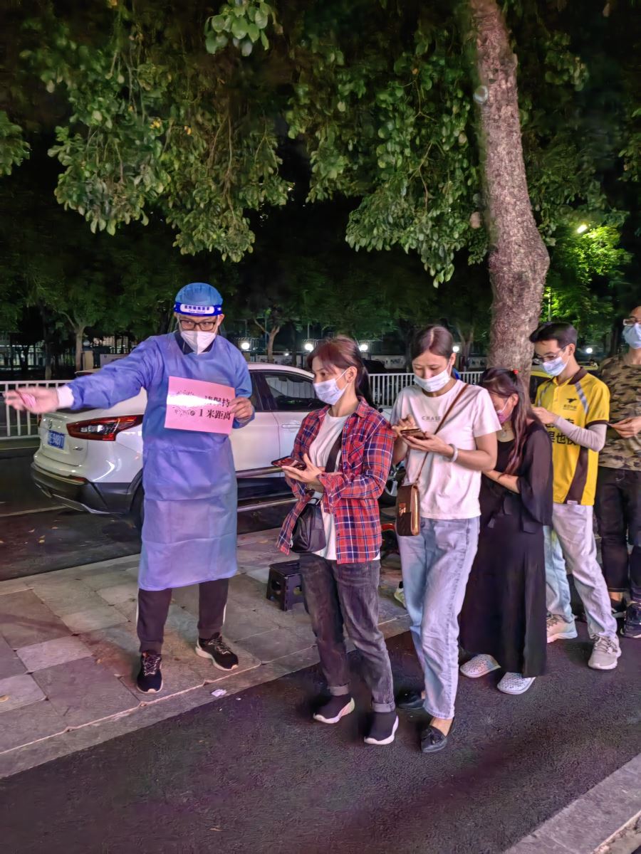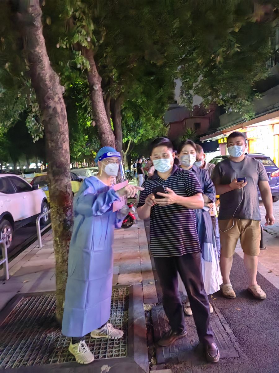 来做核酸检测的群众络绎不绝,下午批次的志愿者们顶着高温热情指引,晚上接棒的志愿者们也用心服务到深夜,大大减轻了工作人员的压力,有力保障了核酸检测工作的高效开展。
