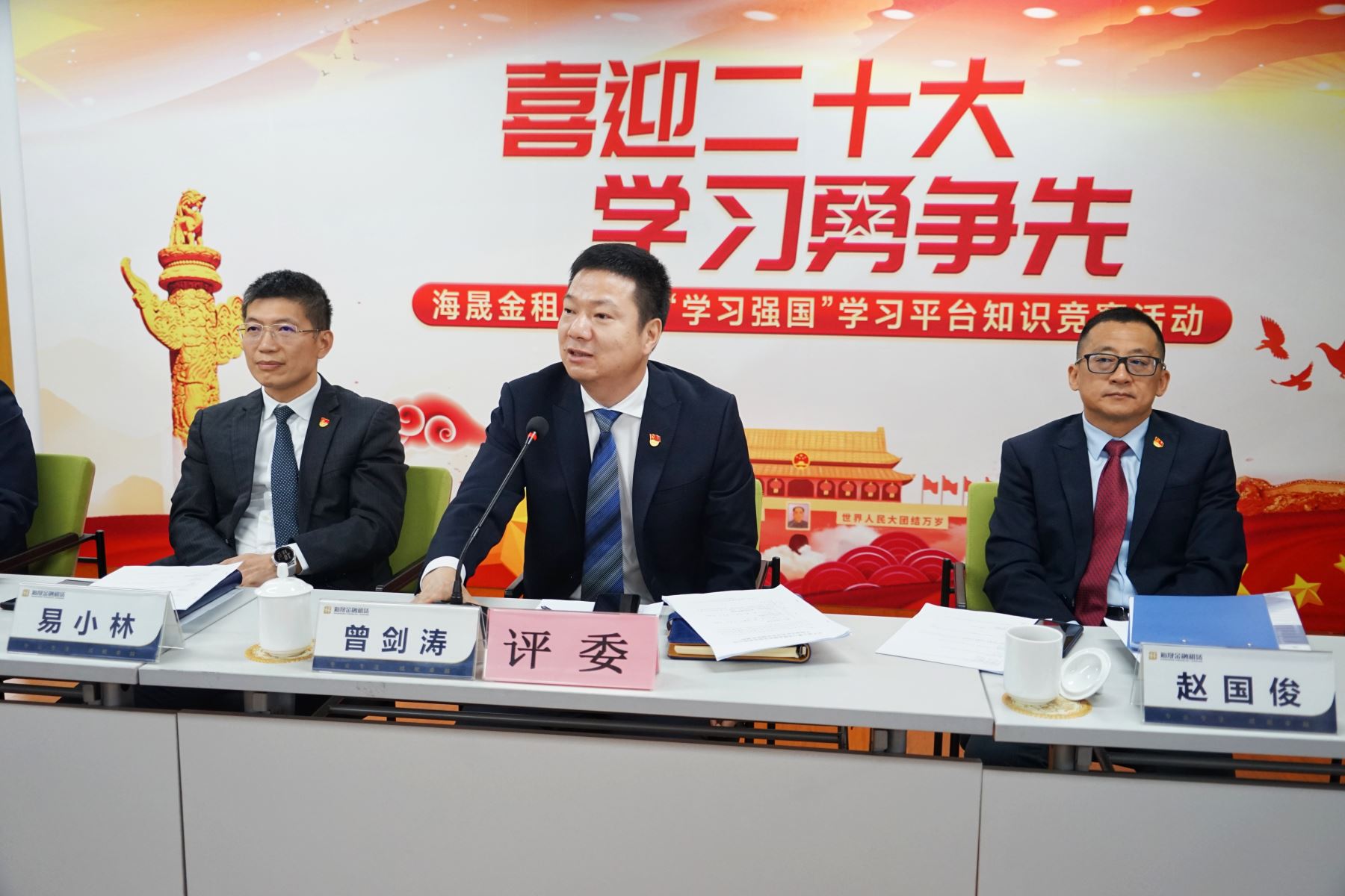 2022年6月8日,为深入学习贯彻习近平新时代中国特色社会主义思想,大力营造迎接宣传党的二十大胜利召开的浓厚氛围,海晟金租党支部借助2022年佛山市“学习强国”学习平台知识竞赛暨全民争当“学习达人”活动契机,广泛发动广大党员干部群众,以赛促学,开展主题为“喜迎二十大、学习勇争先”的“学习强国”学习平台知识竞赛。