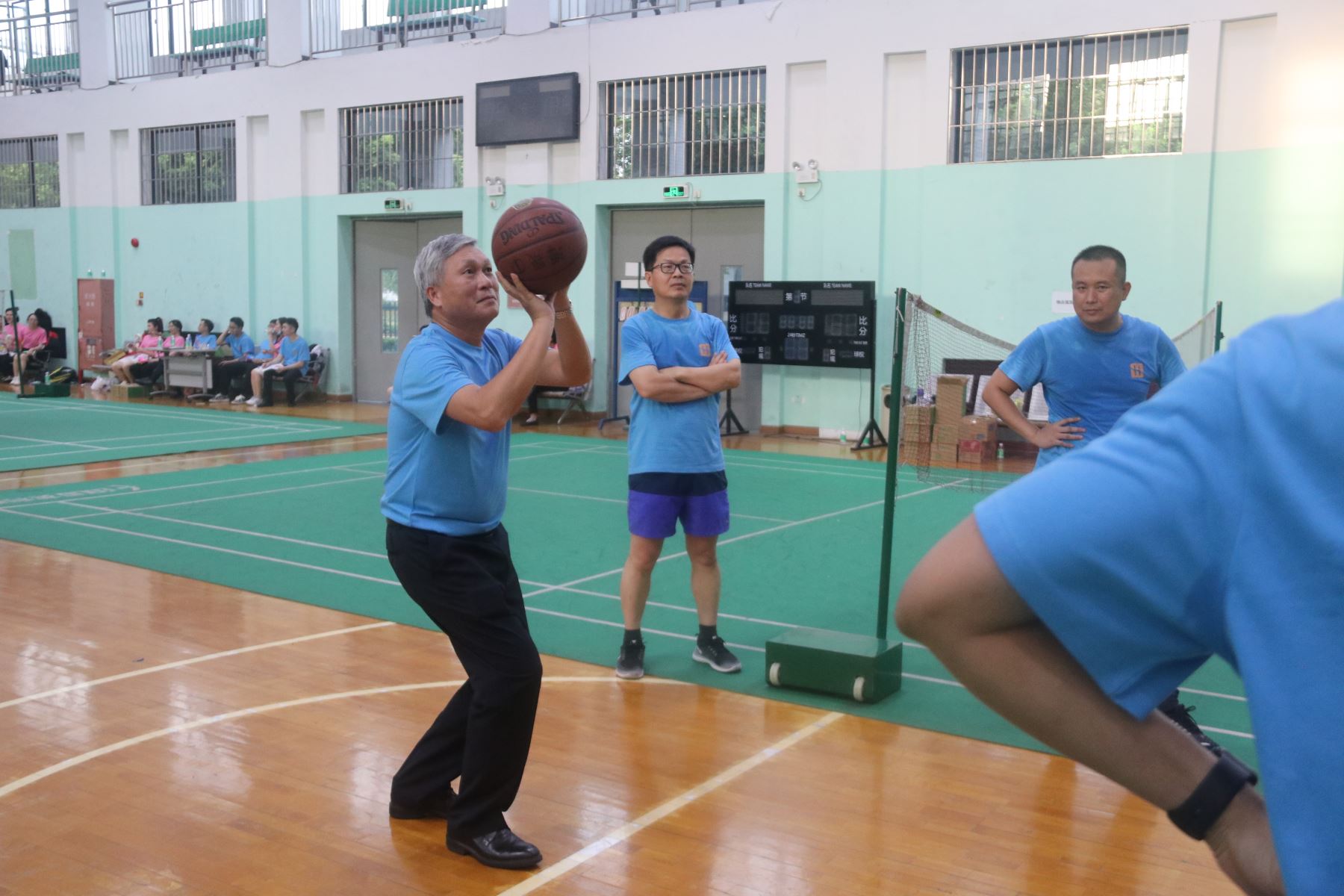 本次篮球赛事激烈,强强对战,精彩纷呈。在热闹的球场上,参赛球员们冲劲十足,场上巧妙的传球、精彩投篮,充分展现体育精神。