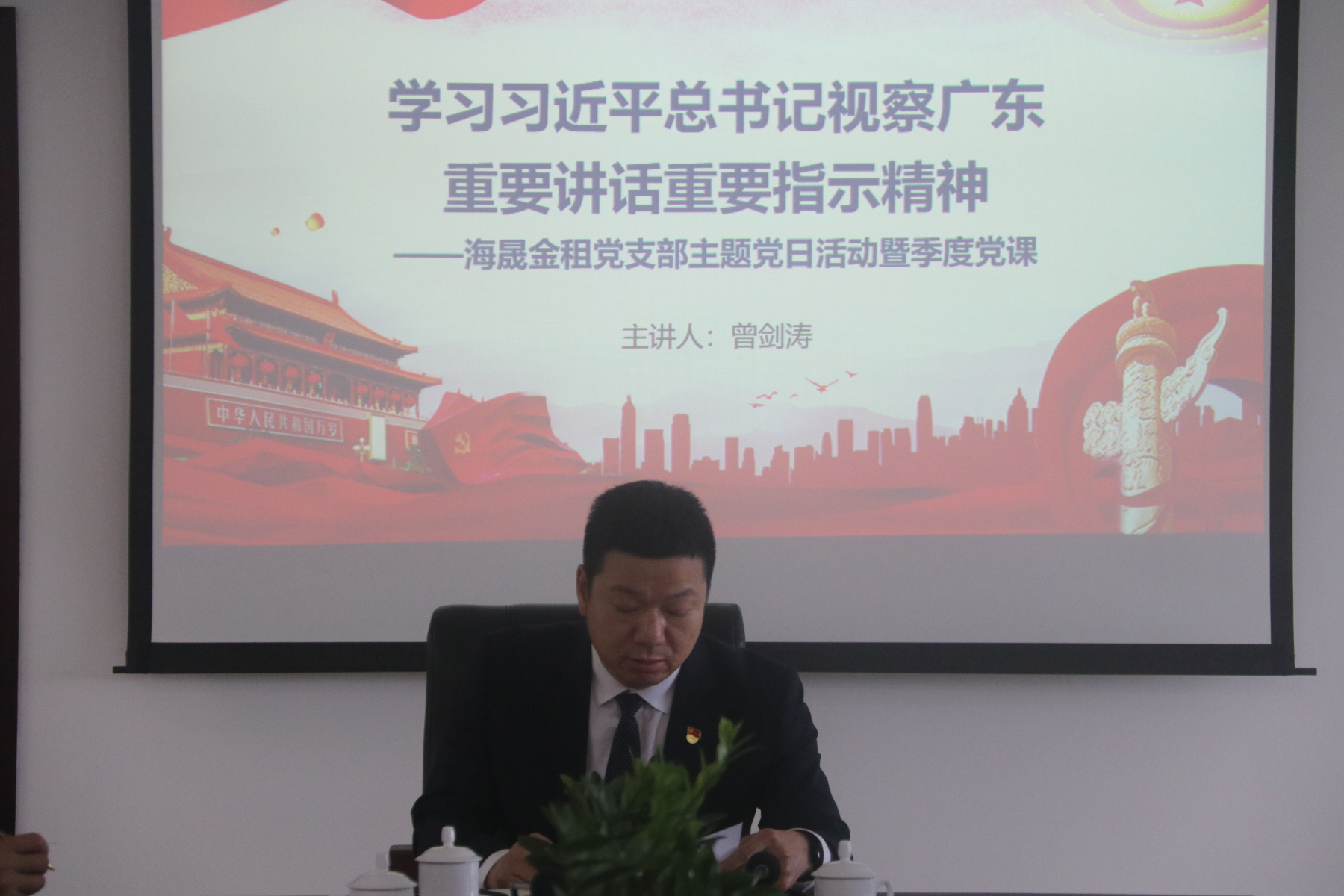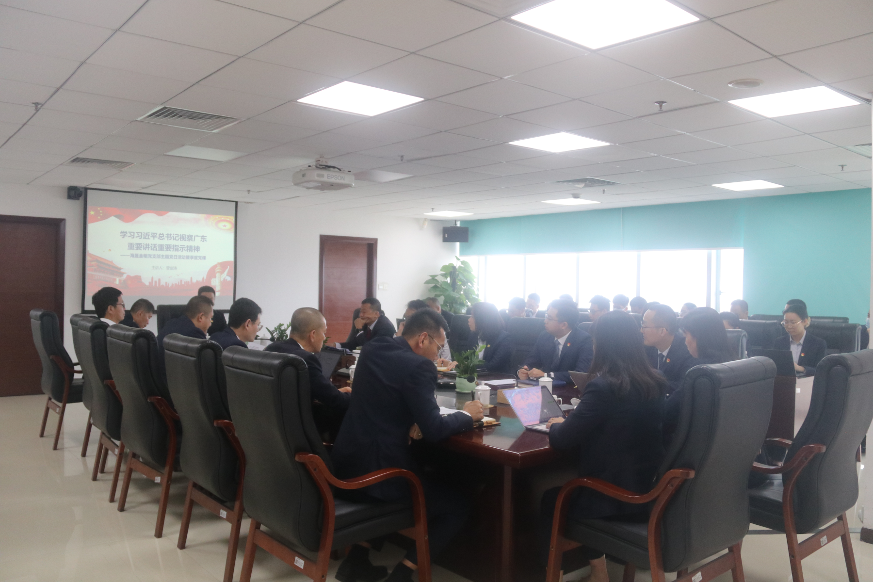 2023年5月15日,海晟金租党支部开展党支部书记讲党课暨主题党日活动,专题学习习近平总书记视察广东重要讲话重要指示精神。公司经营领导班子、部门负责人、全体党员和入党积极分子参加了本次活动。
