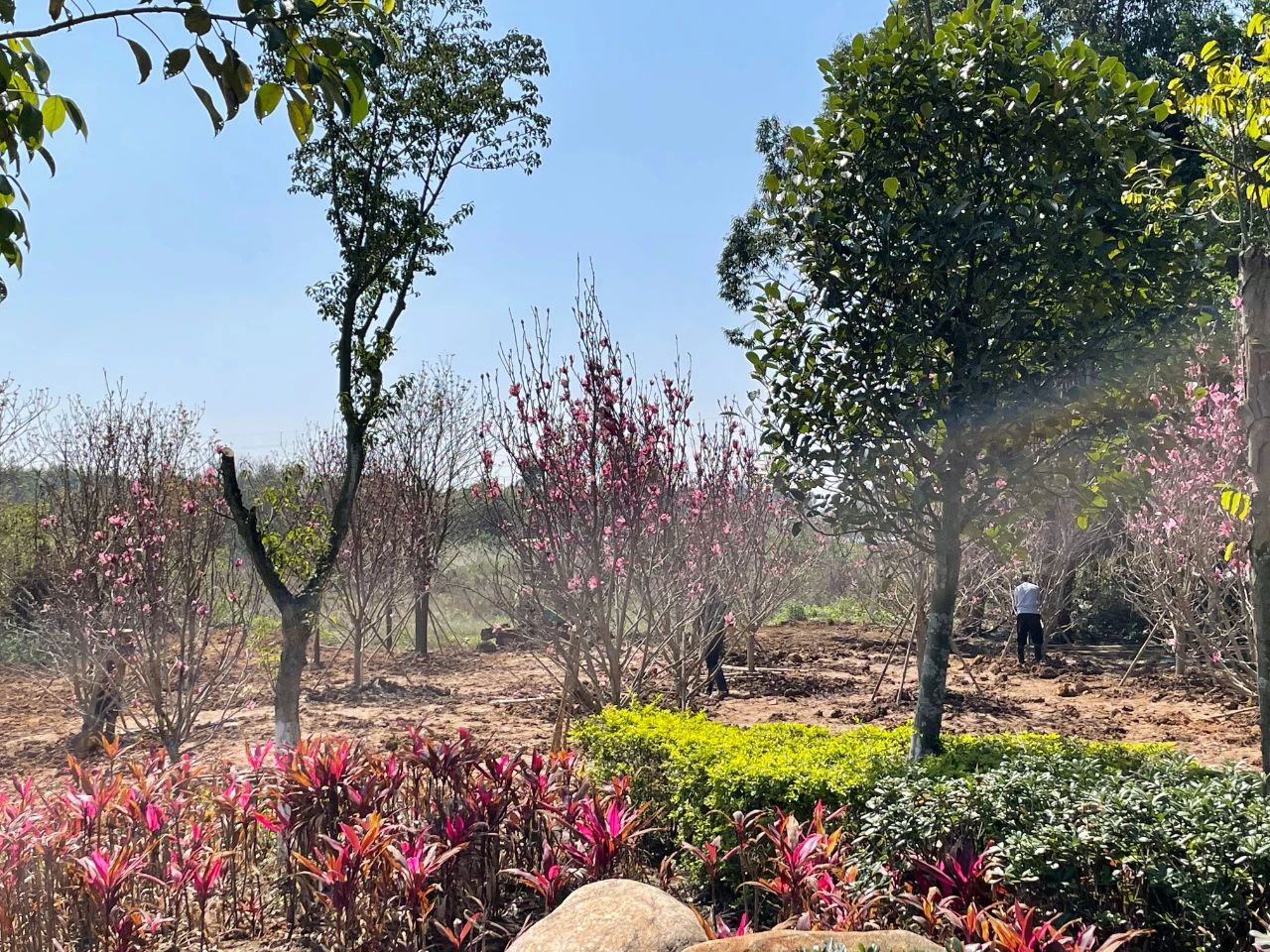 经过一番辛勤劳动,树苗错落有致地伫立在公园中。黄花风铃木和玉堂春的枝丫上挂满了花苞,有些已经迫不及待迎风绽放,为早春大地增添了盎然春意。