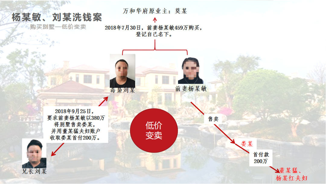 毒枭刘某被抓捕后,杨某敏与兄长刘某通过房屋中介低价变卖别墅,套取毒资。