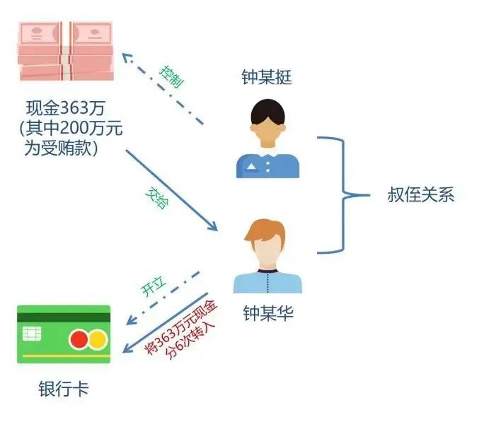 提供资金账户转移受贿资金。惠州钟某华案中,2013年钟某华根据钟某挺的要求以自己名义开立银行卡,并以现金方式将钟某挺控制的人民币363万元(其中200万元为钟某挺受贿款),于开户后不久短时间内分多次共6笔大额现金存入该银行卡。佛山黄某明案也存在提供资金账户的洗钱手法,如黄某明通过自己的银行账户接收张某的受贿所得和以受贿款购买房产后出售该房产取得的款项。