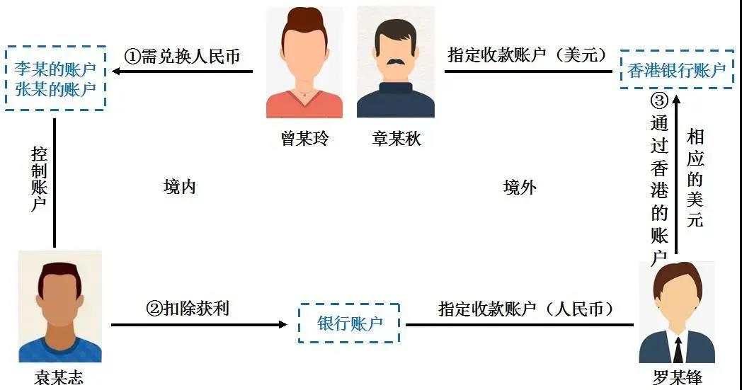 (二)通过控制多个个人银行账户协助兑换外汇转移至境外。袁某志未经国家有关主管部门批准的情况下,非法经营外汇兑换业务,在上游客户罗某锋(另案处理)报价的基础上,加价与下游客户进行兑换,从中赚取差价牟利。2018年5月至2020年5月期间,袁某志在明知曾某玲、章某秋从事走私犯罪的情况下,与两人商谈好兑换汇率、兑换金额后,袁某志通过其控制的李某、张某等人的银行账户收取曾某玲、章某秋转入的人民币,扣除自己的获利,将剩余人民币转给上游客户罗某锋指定的银行账户,并将曾某玲、章某秋提供的香港收款账户发给罗某锋。罗某锋收到款项后,通过香港的银行账户将相应的美元转入曾某玲、章某秋提供的香港收款账户中。经查实,袁某志为曾某玲、章某秋非法兑换外汇并将资金汇往境外,金额共计人民币17355.74万元,非法获利34.71万元。
