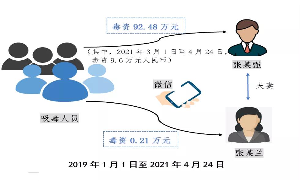 (一)利用微信账户接收毒资。2019年1月1日至2021年4月24日期间,张某强利用其微信账户共接收毒资92.48万元,其中2021年3月1日至2021年4月24日期间共接收微信账户转入的毒资共计9.6万元人民币;张某兰利用其微信账户在2019年1月1日至2021年4月24日期间接收毒资0.21万元。
