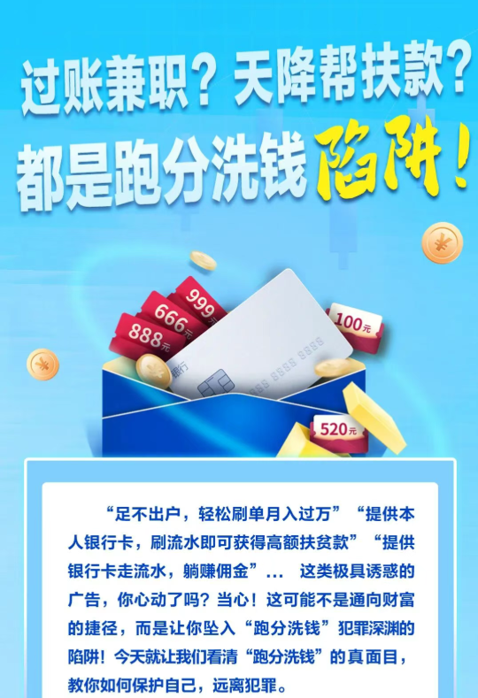 粤来粤懂反洗钱|过账兼职?天降帮扶款?都是跑分洗钱陷阱!